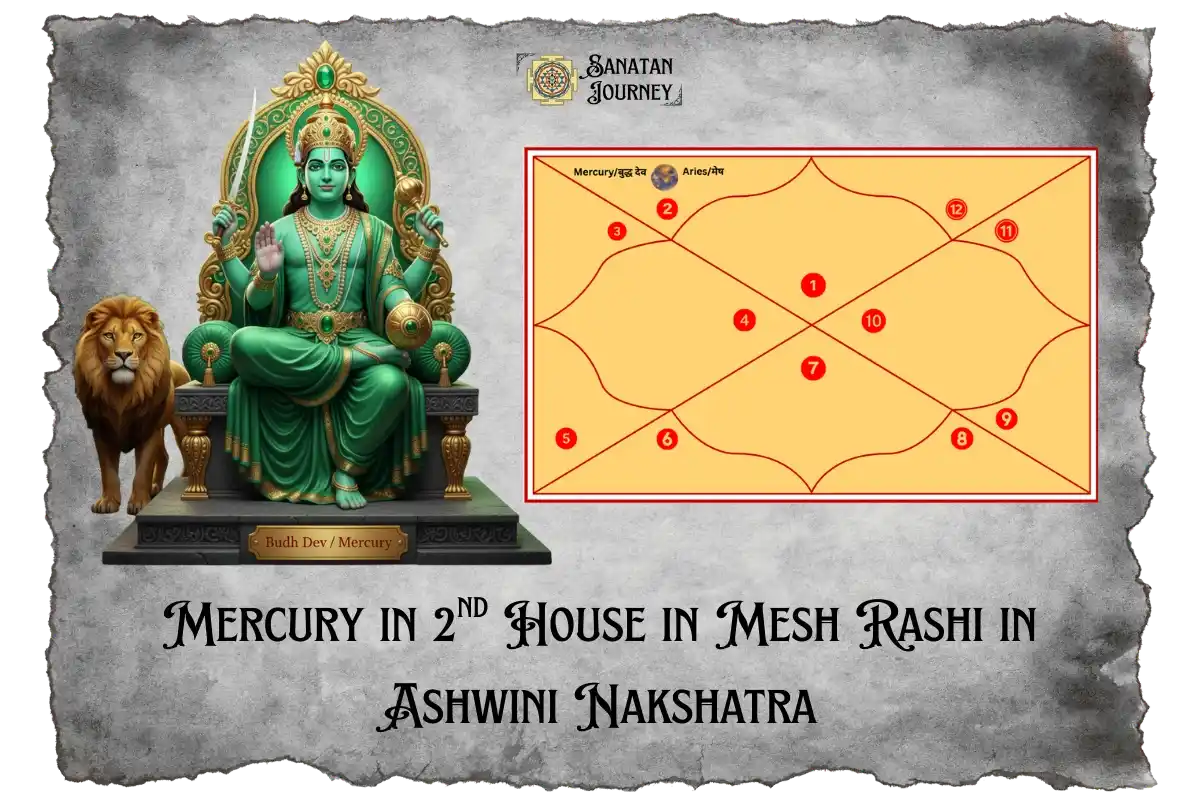 Disclaimer: This is a general analysis of the result of Mercury in 2nd House in Mesh Rashi in Ashwini Nakshatra. The information provided is intended solely for educational and informational purposes. It is not a definitive or personalized prediction. For an accurate and comprehensive kundali (horoscope) analysis, the native is strongly advised to consult a qualified professional astrologer.