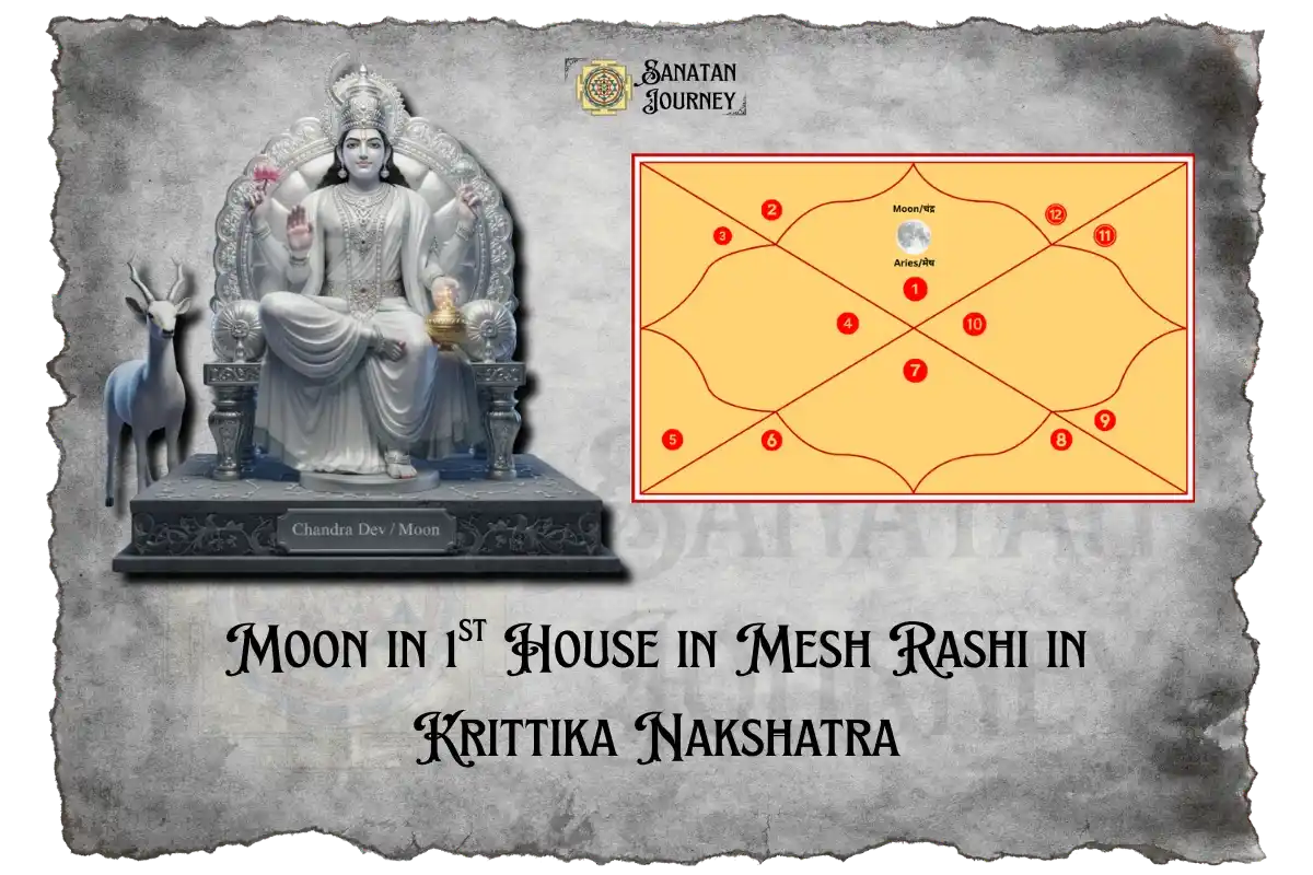 Disclaimer: This is a general analysis of the result of Moon in 1st House in Mesh Rashi in Krittika Nakshatra. The information provided is intended solely for educational and informational purposes. It is not a definitive or personalized prediction. For an accurate and comprehensive kundali (horoscope) analysis, the native is strongly advised to consult a qualified professional astrologer.