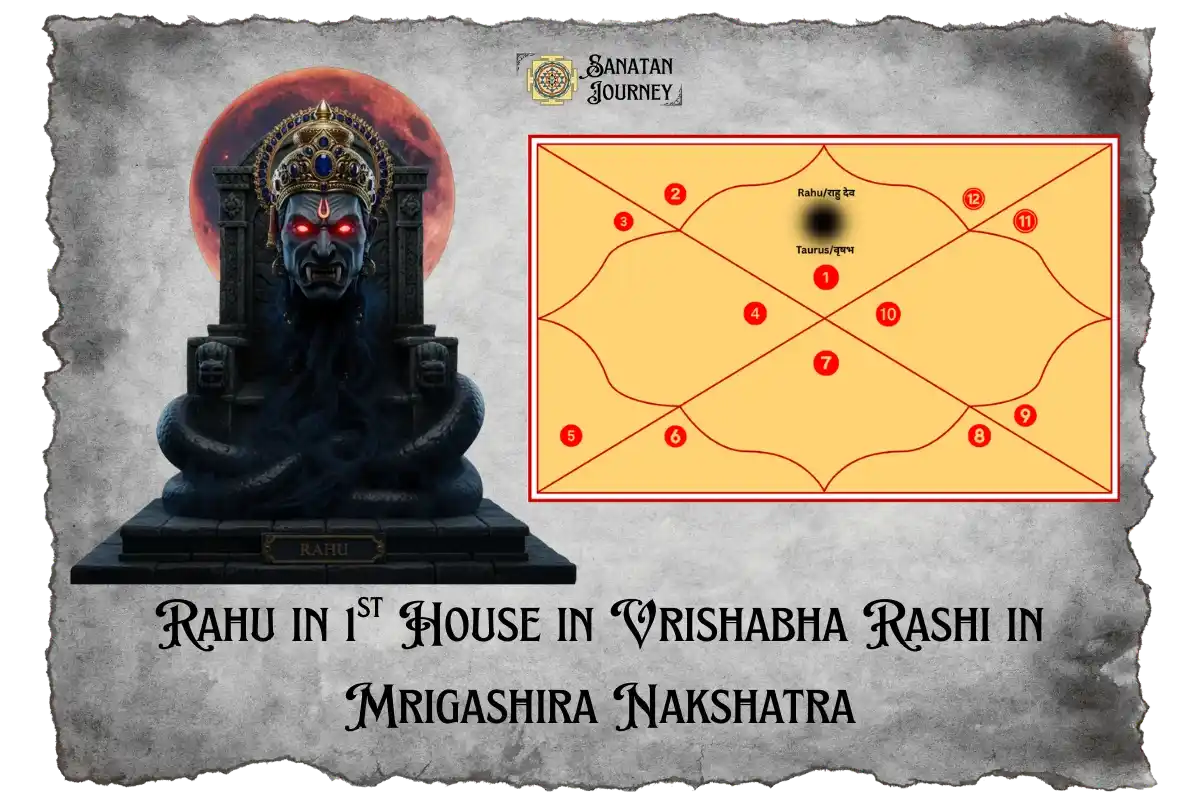 Disclaimer: This is a general analysis of the result of Rahu in 1st House in Vrishabha Rashi in Mrigashira Nakshatra. The information provided is intended solely for educational and informational purposes. It is not a definitive or personalized prediction. For an accurate and comprehensive kundali (horoscope) analysis, the native is strongly advised to consult a qualified professional astrologer.