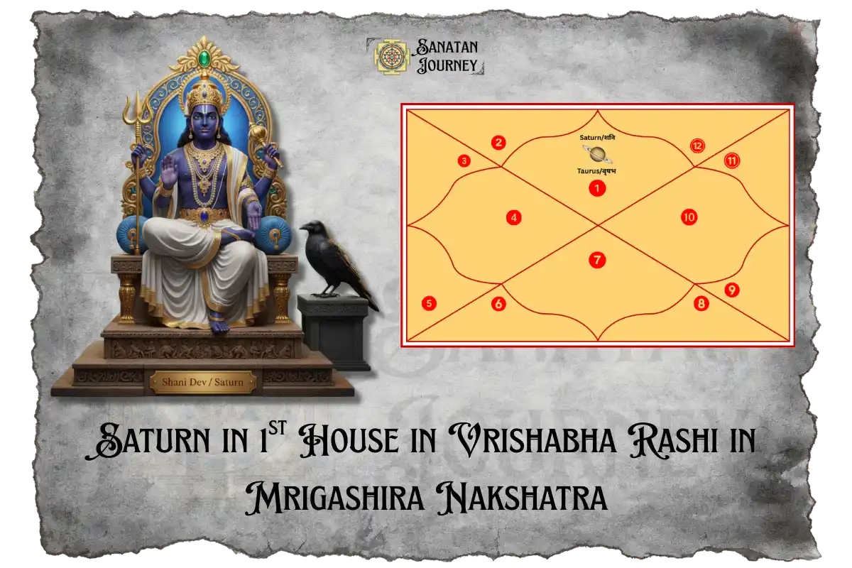 Disclaimer: This is a general analysis of the result of Saturn in 1st House in Vrishabha Rashi in Mrigashira Nakshatra. The information provided is intended solely for educational and informational purposes. It is not a definitive or personalized prediction. For an accurate and comprehensive kundali (horoscope) analysis, the native is strongly advised to consult a qualified professional astrologer.
