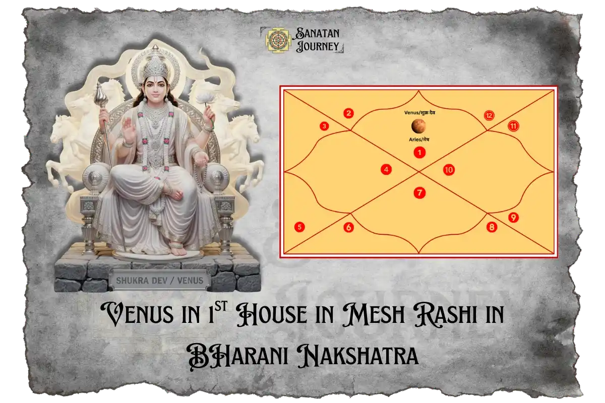 Have you ever wondered about the specific meaning of Venus in 1st house in Mesh Rashi in Bharani Nakshatra? It is a fascinating topic in Vedic Astrology! When Shukra in 1st House sits in your chart, it changes how you look and act. This spot is very special because we look at it using the Kalpurush Kundali, where Aries Lagna is the very first house. This placement combines the passionate, watery, and artistic energy of Venus with the fiery, impulsive nature of Aries and the intense, transformative power of Bharani Nakshatra, all focused on the house of self, appearance, and vitality. It creates a mix of Venusian Charm and strong energy that makes you unique.