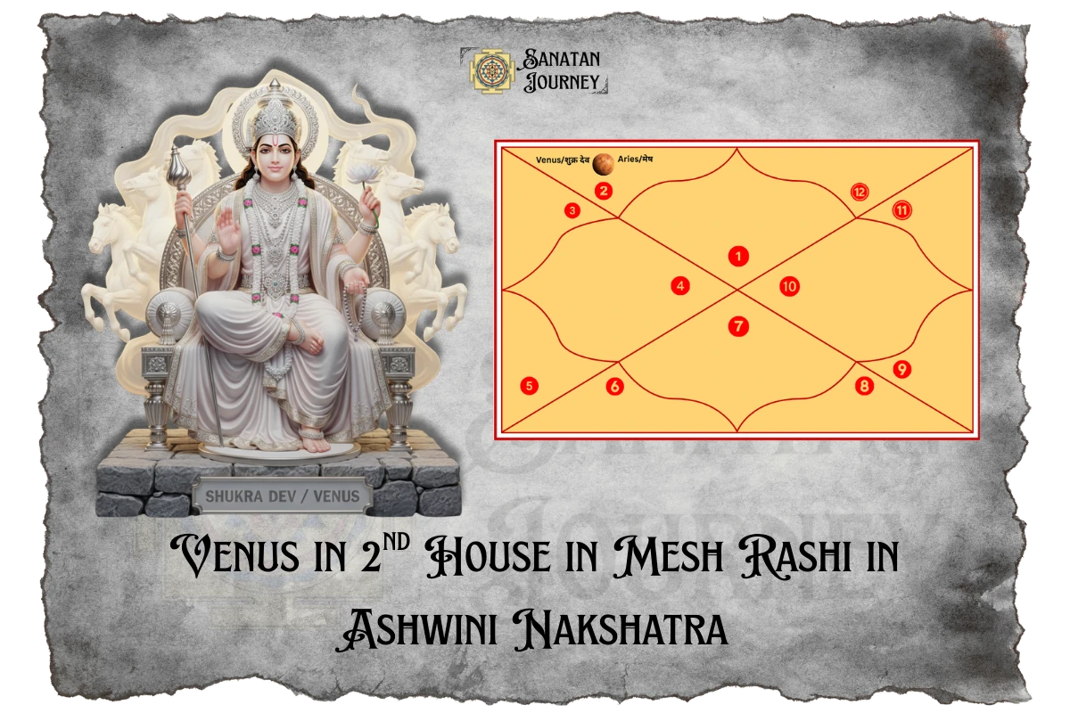 Disclaimer: This is a general analysis of the result of Venus in 2nd House in Mesh Rashi in Ashwini Nakshatra. The information provided is intended solely for educational and informational purposes. It is not a definitive or personalized prediction. For an accurate and comprehensive kundali (horoscope) analysis, the native is strongly advised to consult a qualified professional astrologer.